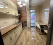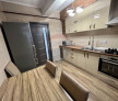 Bucătărie: Complet mobilată și echipată cu electrocasnice moderne (plită pe gaz, cuptor electric, hotă, combină frigorifică, cuptor cu microunde). Include zonă de dining generoasă.