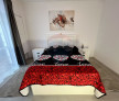 Dormitor: Pat matrimonial generos, noptiere și acces direct către zonele de depozitare.