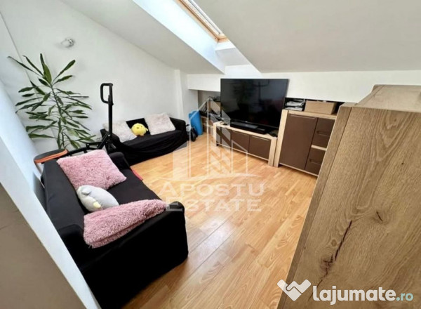 APOSTU ESTATE vă propune spre închiriere un apartament cu 2 camere la mansarda, ideal pentru cupluri, studenți sau o familie la început de drum..