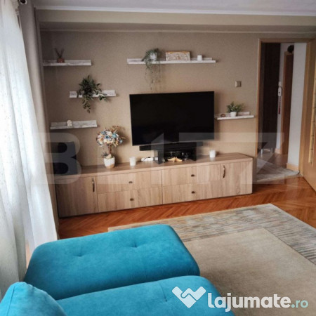 BLITZ vă prezintă un apartament cu 2 camere, perfect pentru cei care caută confort și funcționalitate. Cu o suprafață de 56 mp, acest apartament este complet mobilat și utilat, oferindu-vă tot ce aveți nevoie pentru un trai modern. Beneficiază de o centrală termică proprie, ce asigură confortul termic pe tot parcursul anului și aer condiționat pentru zilele de vară mai călduroase.