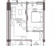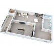 Locuinta in suprafata de 43,63 mp mp este alcatuita dintr-un living open space cu bucataria de 25,53 mp, dormitorul 12,51 mp si baia 5.60 mp dotata cu cada..