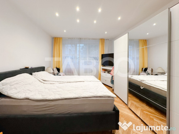 Apartamentul se vinde mobilat si utilat cu: aragaz, cuptor, hota, masina de spalat rufe, frigider cu congelator.