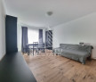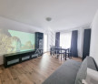 - living spatios si luminos mobilat cu canapea, masa si videoproiector si cu acces la balcon