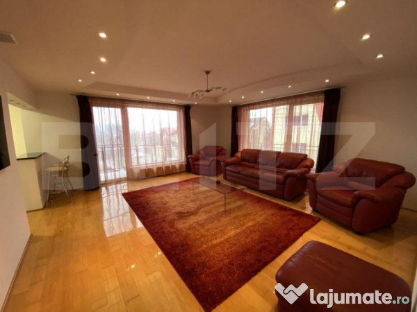 Blitz va ofera spre prima inchiriere un apartament mobilat modern cu 3 camere, situat in cartierul Manastur, zona strazii Aleea Negoiu. Apartamentul este situat la etajul 1 unui imobil cu 5 niveluri si are o suprafata utila de 90 mp. Compartimentarea este semidecomandata si gandita astfel: 1 dormitor, 1 camera, living open space cu bucataria, hol, baie si balcon. Acesta este dotat cu centrala termica proprie, geamuri termopan cu tamplarie PVC si usa metalica la intrare.