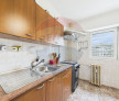 Bucataria separata este suficient de mare pentru a gazdui atat zona de gatit, cat si un colt de luat masa, perfect pentru mic-dejunurile in familie. Geamul generos ofera lumina naturala si aerisire buna, iar mobilierul si electrocasnicele sunt bine intretinute si functionale.