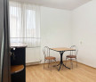 It is rented partially furnished and has a parking space in front of the building.