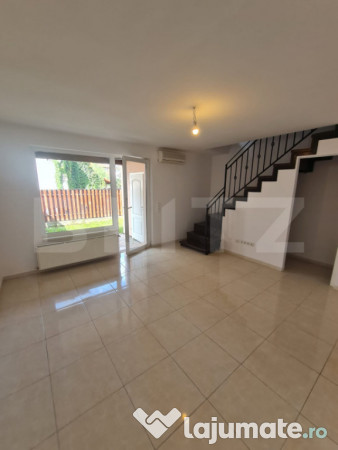 Acesta este amplasat intr-un ansamblu de case insiruite din zona Somesului, dispune de centrala termica proprie, tamplarie PVc cu geam termopan, aer conditionat si este compus din: Parter; hol, bucatarie, living, debara si baie. Etaj; hol, 2 dormitoare, baie si terasa. Mansarda open space. Pentru mai multe detalii nu ezitati sa ne contactati.