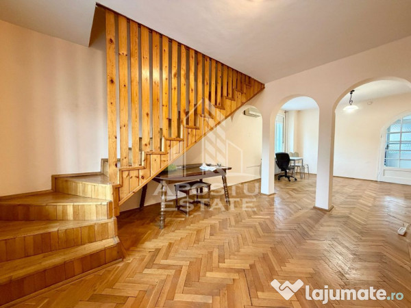 APOSTU ESTATE vă propune spre închiriere un apartament spațios și elegant pe doua niveluri cu 4 camere la casa, la etajul 1 si 2 din 2 situat într-o zonă liniștită și bine conectată din Olimpia - Stadion, ideal pentru cupluri, familii sau persoane care doresc un spațiu generos și confortabil.