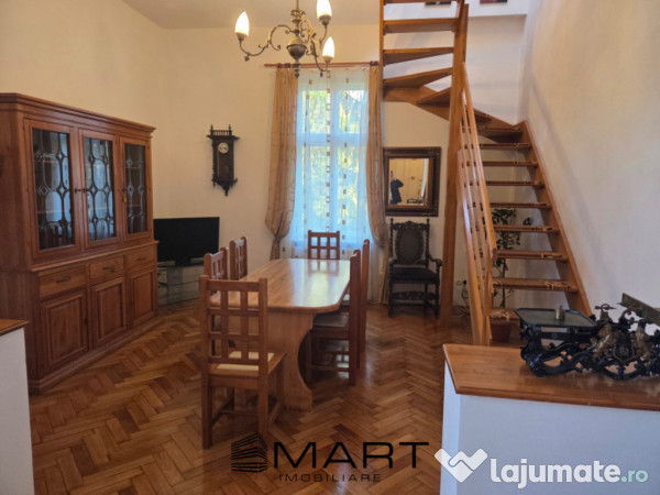 P18015 Smart Imobiliare propune spre închiriere un apartament cu 5 camere, situat în Sibiu, în zona Centrala, pe strada Constantin Noica, având o suprafață utilă de aproximativ 80 mp (96 mp suprafață construită). Apartamentul este amplasat la etaj 1 al unui imobil cu 2 niveluri și se remarcă prin poziționarea bună cu acces facil către mijloace de transport în comun, magazine, farmacie, supermarket, scoală, grădiniță, spații verzi.