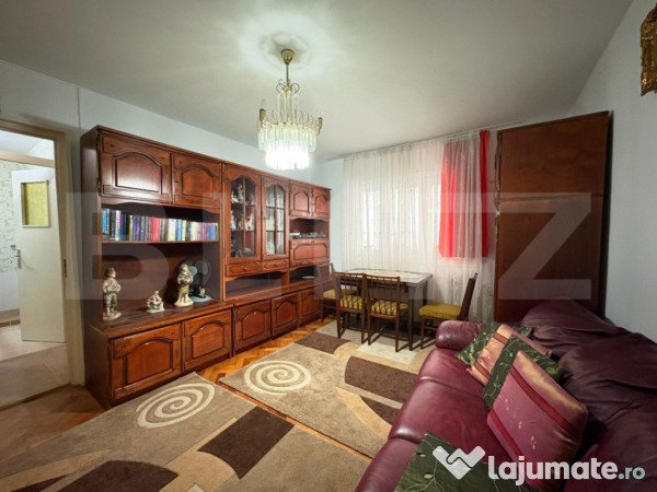 Locuința beneficiază de centrală termică proprie, baie cu aerisire naturală și o compartimentare practică.