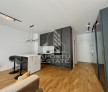 - bucatarie utilata si mobilata modern cu loc de luat masa