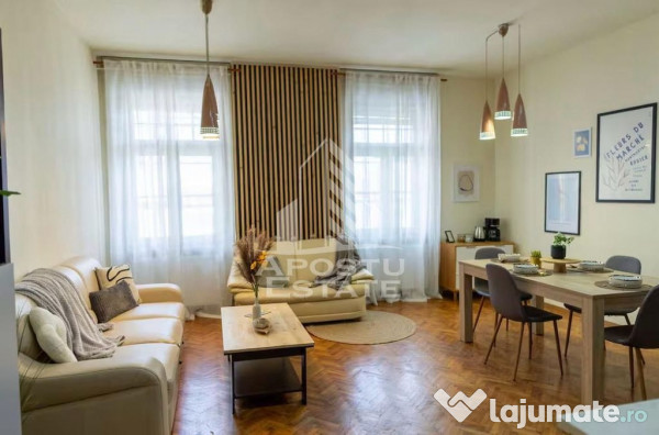APOSTU ESTATE vă propune spre vânzare un apartament cu personalitate, amplasat chiar în inima Timișoarei – Piața Victoriei, într-o clădire istorică cu farmec arhitectural aparte, în curs de reabilitare.