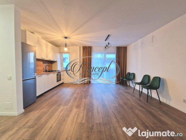 Koncept Imobiliare va ofera spre inchiriere un apartament cu 2 camere, localizat pe strada Berzei, comuna Baciu, intr-o zona linistita, cu acces facil catre oras. Proprietatea se afla la etajul 2 al unui imobil rezidential nou, cu 4 niveluri si lift, oferind confort si accesibilitate. Apartamentul are o suprafata utila de 51 mp si este compus din living cu bucatarie open-space, dormitor, baie si hol. De asemenea, beneficiaza de un balcon spatios de 10 mp, care completeaza perfect spatiul locuibil. In pret este inclus si un loc de parcare exterior, situat in dreptul imobilului. Locuinta dispune de finisaje moderne si de dotari premium: centrala termica proprie, incalzire prin pardoseala, ferestre cu 3 foi de sticla, plita pe gaz, hota, frigider, masina de spalat vase si masina de spalat rufe. Livingul este mobilat cu canapea, masa si scaune, ceea ce ii confera un plus de functionalitate si confort. Se recomanda pentru un cuplu sau o persoana care doreste o locuinta moderna, bine compartimentata, cu cheltuieli reduse la intretinere si acces rapid spre oras. Pozitionarea la etaj intermediar si sectiunea de mijloc asigura un climat termic placut si costuri optimizate. Pentru informatii complete, programarea unei vizionari sau pentru a afla oferta noastra completa va stam la dispozitie telefonic, prin e-mail sau la sediul agentiei noastre, pe str. Aviator Badescu, nr. 19, Cluj-Napoca.