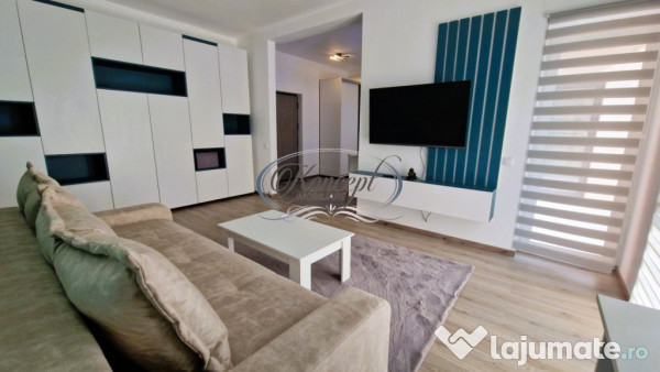 Koncept Imobiliare ofera spre inchiriere un apartament modern cu 2 camere, situat in Floresti, pe strada Tineretului. Imobilul este retras de la strada principala, oferind liniste si intimitate, dar in acelasi timp are acces facil catre statie, magazine si alte puncte de interes din zona. Proprietatea se afla la parter inalt, intr-un imobil recent construit cu doar 2 etaje, ceea ce asigura o comunitate restransa si un cadru placut. Locuinta are o suprafata utila de 50 mp si se completeaza cu un balcon generos de 11 mp, accesibil atat din living, cat si din dormitor. Compartimentarea este decomandata si include living spatios, bucatarie, dormitor si baie, oferind un spatiu functional si bine organizat. Apartamentul este la prima inchiriere si se remarca prin finisaje moderne si mobilier de calitate. Printre dotari se numara: centrala termica proprie cu incalzire prin pardoseala, masina de spalat vase, masina de spalat rufe, plita si cuptor electrice, hota, cuptor cu microunde si televizoare in ambele camere. Pentru confort suplimentar, apartamentul beneficiaza de un loc de parcare in curtea imobilului, cu acces securizat prin bariera, inclus in pret. Se inchiriaza prin persoana juridica, TVA fiind deductibil, aspect avantajos pentru clienti business. Aceasta proprietate reprezinta o alegere ideala pentru cupluri sau persoane active care apreciaza linistea, confortul si accesul rapid catre zonele de interes. Pentru informatii complete, programarea unei vizionari sau pentru a afla oferta noastra completa va stam la dispozitie telefonic, prin e-mail sau la sediul agentiei noastre, pe str. Aviator Badescu, nr. 19, Cluj-Napoca.