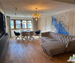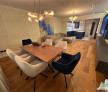 Livingul open space include o zona de dining, o zona de relaxare/TV si o bucatarie complet utilata, cu insula centrala si camara inchisa.