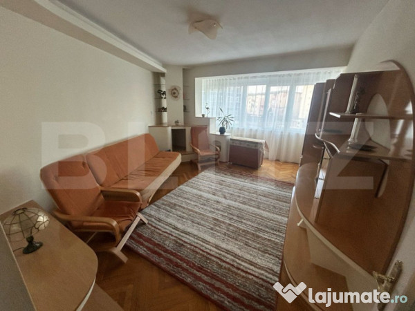 Blitz propune spre inchiriere un apartament de 3 camere la etajul 2 din 4. Imobilul este decomandat si compartimentat astfel: living spatios, 2 dormitoare, bucatarie, hol, o baie si balcon inchis.