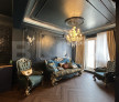 -pereți în tonuri închise, candelabre cu cristale și decorațiuni clasice;