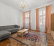 Living spațios, luminos, amenajat cu canapea extensibilă, mobilier modern și pardoseală din lemn masiv.