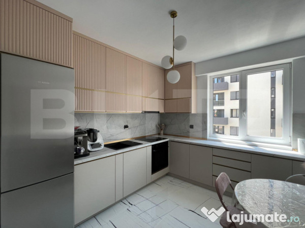 Apartamentul este format din 3 dormitoare luminoase, un living generos, 2 băi și o bucătărie închisă, complet mobilată și utilată modern. Este amenajat cu gust și oferă finisaje de calitate superioară. Confortul termic este asigurat de încălzire în pardoseală, iar spațiul este bine optimizat pentru un stil de viață echilibrat și funcțional.