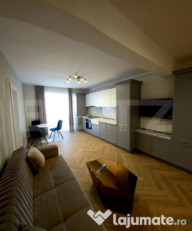 Este complet mobilat și utilat lux, ceea ce înseamnă că te poți muta imediat, fără alte investiții sau stres logistic – economisești timp, bani și energie. Finisajele sunt de top: tapet premium, pardoseli moderne și mobilier de calitate superioară, totul gândit pentru un stil de viață rafinat și relaxat.