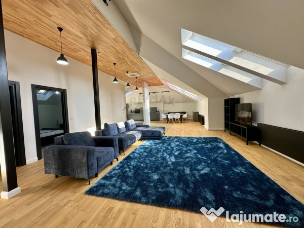 - o suprafata utila de 171 mp ce se imparte in 3 dormitoare, 2 bai din care una este dedicata unui dormitor, un living imens de 110 mp impartit in zona de luat masa, zona de relax si bucatarie.