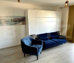 În living, spațiul comportă atât zona de "living", cu canapea, cât și zona de dormit datorită mobilierului smart Murphy Bed (160x200), dar și zona de birou.