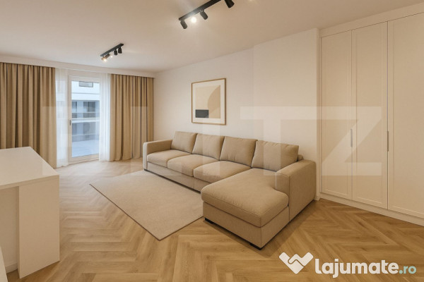 Blitz va propune spre vânzare un apartament cu 2 camere situat la etajul 1 în ansamblul rezidențial Elite City. - Apartamentul face parte din a doua faza a proiectului compartimentat astfel: dormitor, living cu bucatarie, baie și o terasa de 10 mp. La cerere se poate mobila, apartamentul dupa bunul plac al clientului, fotografiile cu mobilierul sunt randari.- Elite CIty este un proiect de regenerare urbană ce folosește cele mai noi tehnologii pentru a construi imobile Smart Ready și care respectă certificarea nZeb, adică apartamente cu un consum energetic aproape de zero! Energia necesară va fi asigurată prin panourile fotovoltaice instalate pe clădiri. - Ansamblul va beneficia în următorii ani de cresa, 3500 mp parc de joacă pentru copii, club de fitness și piscină, 18800 mp spații verzi - La parter vor fi spatii comerciale, stația de autobuz fiind în fata blocului -! - Opțional se poate achiziționa și loc de parcare subteran la prețul de 17000 euro/ Va așteptăm la vizionari!