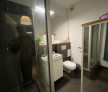 Baie modernă, cu cabină de duș, aerisire naturală și detalii de design inteligent – inclusiv mașina de spălat integrată discret;