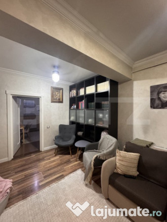 Acesta are o suprafață totala de 68 mp. Compartimentarea acestuia este decomandată, astfel: un hol mai mare, facut ca un mic living, 2 dormitoare, living, bucatarie si o baie cu aerisire naturala. Se vinde complet utilat si mobilat, imobilul a fost renovat recent, si este foarte modern si cu bun gust.