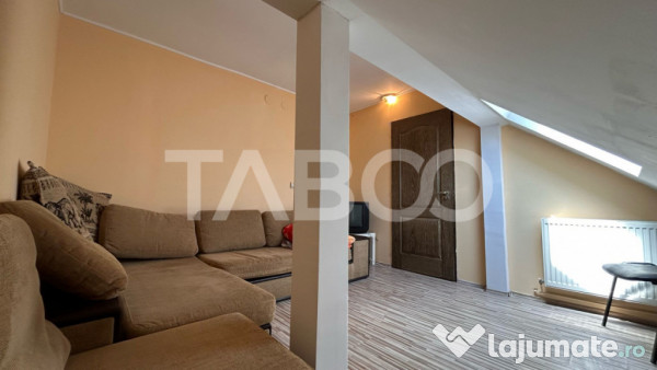 TABOO Imobiliare propune un apartament de vanzare cu 4 camere, semidecomandat, situat in localitatea Sibiu, zona Vasile Aaron, aflat la Mansarda intr -un imobil tip bloc cu regim de inaltime pe Parter + 4 Etaje + Mansarda; anul constructiei 1986, structura caramida. Suprafata utila de 90 mp + balcon de 4 mp.