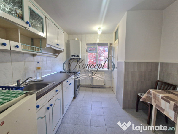 Koncept Imobiliare va ofera spre inchiriere un apartament decomandat situat in cartierul Intre Lacuri, in zona Fujikura Automotive, apreciata pentru accesibilitate si pentru proximitatea fata de statiile de transport in comun, magazine, banci, farmacii si unitati de invatamant. Apartamentul este amplasat la etajul 3 al unui imobil cu 4 niveluri construit in anul 1980, un bloc intim si bine organizat, situat intr-o zona linistita, potrivita pentru rezidenta pe termen lung. Proprietatea dispune de o suprafata utila de 50 mp, la care se adauga doua balcoane deschise totalizand 14 mp, ambele accesibile din dormitoare, oferind spatiu suplimentar pentru relaxare sau depozitare. Compartimentarea este practica si functionala, cu bucatarie separata prevazuta cu loc de luat masa, hol spatios la intrare si doua debarale utile pentru organizare. Apartamentul include doua dormitoare luminoase si doua bai, una dotata cu dus si cealalta cu cada, adaptate pentru confortul zilnic al unei familii sau al unor locatari care prefera un ritm de viata echilibrat. Orientarea nord-sudica permite o buna ventilatie si un ambient interior constant pe tot parcursul zilei. Finisajele clasice se afla intr-o stare foarte buna, iar mobilierul din lemn masiv confera o atmosfera calda, autentica si durabila. Tamplaria PVC cu geam termopan asigura o buna izolare, in timp ce incalzirea prin centrala termica proprie si calorifere contribuie la un confort termic eficient si controlat. Proprietatea este complet mobilata si utilata, incluzand frigider, masina de spalat rufe si aragaz, astfel incat viitorul chirias se poate muta imediat. Pozitionarea intr-un cartier linistit, compartimentarea avantajoasa, suprafata echilibrata si accesul rapid spre punctele de interes fac din acest apartament o alegere potrivita pentru un cuplu, o familie sau studenti in cautarea unui spatiu practic, confortabil si bine conectat cu restul orasului. Pentru informatii suplimentare, programarea unei vizionari sau pentru a afla oferta noastra completa va stam la dispozitie telefonic, prin e-mail sau la sediul agentiei noastre, pe str. Aviator Badescu, nr. 19, Cluj-Napoca.