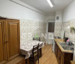 Sufragerie mobilată cu piese din furnir, foarte bine întreținute: dulap generos, canapea, masă de dining, comodă și servantă;