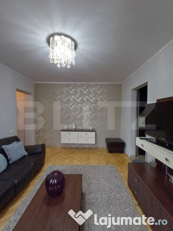 Blitz ofera la vanzare apartament semidecomandat cu 3 camere in Turda, zona Micro II. Acesta este situat la etajul 2 al unui imobil cu 4 nivele. Blocul este din caramida si este izolat la exterior. Suprafata utila este de 60 mp, compartimentarea se prezinta astfel: hol intrare, bucatarie spatioasa complet mobilata si utilata, living, 2 dormitoare, hol cu spatiu de depozitare, 1 baie cu geam, 1 balcon inchis. Apartamentul a fost recent renovat si se preda complet mobilat si utilat, asa cum apare in fotografii. Dispune de centrala proprie, geamuri termopan, parchet din lemn, finisaje de calitate. Imobilul este situat intr-o zona linistita cu spatiu verde, alei pietonale si zona de joaca pentru copii. De mentionat ca in proximiatea apartamentului avem scoala, magazine, farmacie, mijloace de transport in comun. Pentru mai multe detalii programeaza o vizionare!