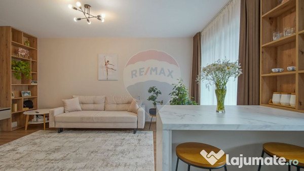 Apartamentul se remarcă prin designul modern, compartimentarea eficientă și finisajele premium. Livingul este luminos și are acces către logie, bucătăria open space este echipată cu electrocasnice Electrolux (cuptor, plită, hotă, mașină de spălat vase și frigider încorporat), dormitorul oferă un ambient confortabil cu lumină naturală, iar baia dispune de ventilație naturală. În plus, holul beneficiază de spații de depozitare atent organizate, iar înălțimea camerelor de 2,7 m oferă o senzație suplimentară de spațiu și luminozitate.
