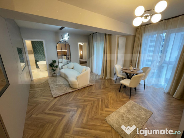 Blitz ofera spre vanzare un apartament elegant și luminos, creat pentru confort și rafinament. Imobilul este amplasat la etajul superior al unui bloc din caramida izolat termic la exterior, si prevazut cu doua lifturi. Locuinta are o compartimentare optima, cu living open-space, un dormitor primitor, baie cu design modern și balcon ideal pentru momente de relaxare. Se vinde complet mobilat și utilat, cu electrocasnice aflate în garanție și mobilier realizat din materiale de cea mai bună calitate. Pentru cei interesati exista si disponibilitatea unui loc de parcare. O alegere perfectă pentru cei care apreciază stilul modern și calitatea.