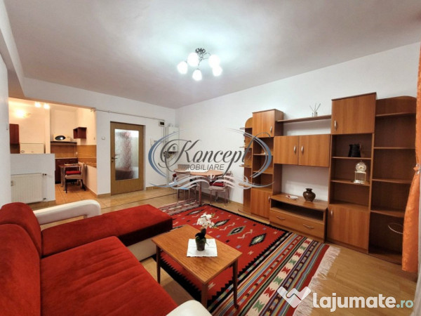 Koncept Imobiliare va ofera spre inchiriere un apartament in cartierul Gheorgheni, Zona FSEGA, in Proximitate Interservisan, la etajul 1 a unui bloc dispus pe 4 etaje. Apartamentul, in suprafata de 54 mp utili, este compus din: hol intrare, living tip open space cu bucatarie si loc de servit masa, un dormitor si o baie. Totodata, exista si 1 balcon de 2 mp inchis cu termopan. Pentru confortul dumneavoastra, in bucatarie exsita o debara incapatoare. Apartamentul dispune de usa antiefractie, centrala termica proprie, geamuri termopan, se inchiriaza mobilt cum este prezentat in poze si utilat: cu aragaz, combina frigorifica, prajitor de paine si cuptor cu microunde. De asemenea, in pretul chiriei mai este inclus un garaj aflat la parterul blocului. Acesta este situat intr-o zona linistita, in apropiere de spatii verzi, magazine, farmacii si alte puncte de interes ale zonei. Datorita locatiei, a compartimentarii si pozitionarii sale, apartamentul se recomanda pentru un cuplu. Pentru informatii suplimentare, programarea unei vizionari sau pentru a va prezenta oferta noastra completa, nu ezitati sa ne contactati telefonic, prin e-mail sau la sediul agentiei noastre de pe str. Aviator Badescu nr. 19, Cluj-Napoca.