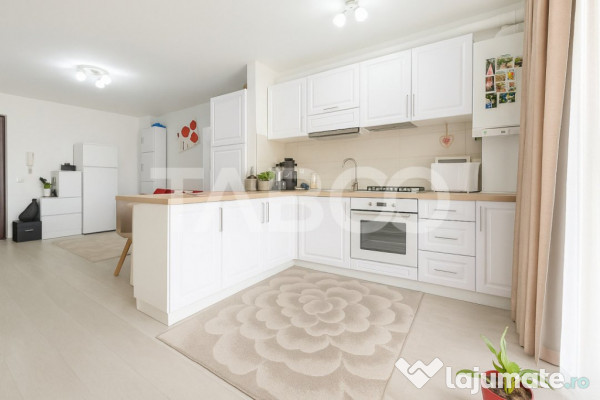 Apartamentul se vinde mobilat si utilat cu: plita pe gaz, cuptor, hota, masina de spalat rufe, frigider cu congelator.