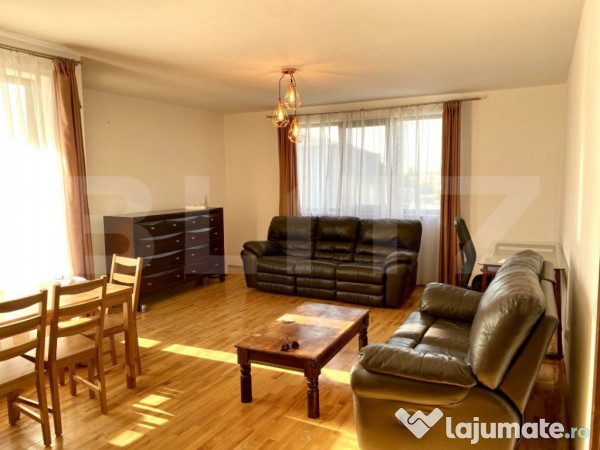 La fel apartamentul este luminos, oferă o atmosfera cozi fiind situat într-o zona cu multă verdeață si linisrit. Se afla într-o zona ușor accesibil către magazine, la doar 1 minut de mers pe jos de mijoacele de transport. exista posibilitate de parcare fără plata in zona fără nici o problema. Acesta se inchiriaza complet mobilat si utilat. Disponibil imediat.