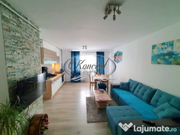 Apartamentul are o suprafata utila de 45,5 mp, la care se adauga terasa de 5,5 mp, si este compartimentat practic intr-un living open space cu bucatarie, un dormitor luminos si o baie cu finisaje moderne. Locuinta se vinde complet mobilata si utilata, fiind pregatita pentru mutare imediata, include electrocasnice precum frigider, plita, cuptor, hota, aer conditionat, masina de spalat haine, televizor si mobilier de buna calitate: pat matrimonial, mobilier de dormitor, canapea confortabila, masa de dining si scaune. Sistemul de incalzire se realizeaza prin centrala proprie cu calorifere, iar instalatiile electrice si sanitare sunt in stare foarte buna.