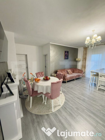 Compartimentarea este practică și aerisită: living și bucătărie open space, două dormitoare, o baie cu cadă și geam de aerisire, un dressing generos și două balcoane – unul cu acces din living, celălalt din dormitor. Finisajele moderne și mobilierul bine ales creează o atmosferă primitoare, potrivită atât pentru locuit, cât și pentru investiție.