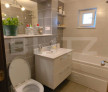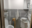 Locuința dispune de două băi: una mare, modernă și o baie de serviciu. În baia mare cada are o ușă de sticlă care nu permite în timpul dușului să se infiltreze apa, fiind mai estetic față de acea perdea clasică de la cadă.