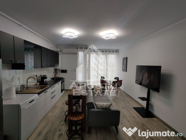 Bucătărie complet mobilată și utilată, cu loc de luat masa