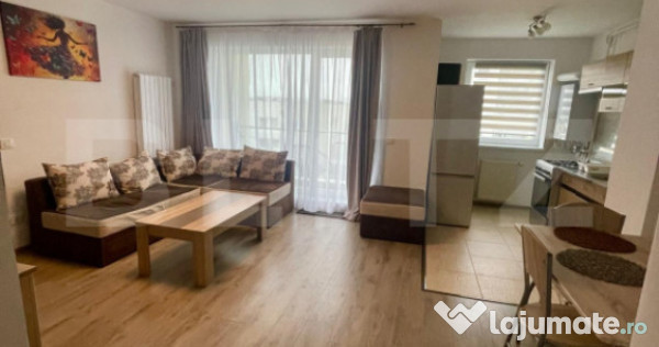 Living generos cu bucătărie open-space, complet mobilată și utilată cu electrocasnice moderne