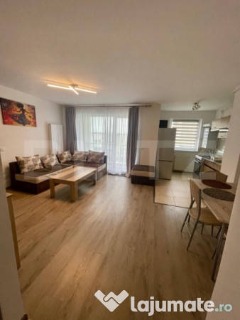 Living generos cu bucătărie open-space, complet mobilată și utilată cu electrocasnice moderne
