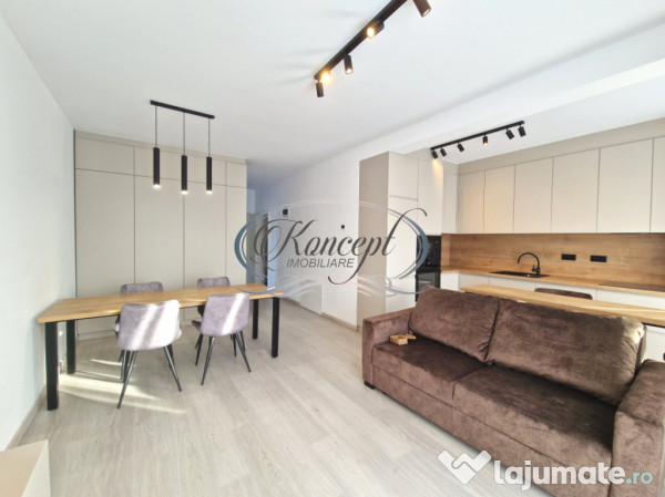 Koncept Imobiliare va ofera spre inchiriere un apartament cu 2 camere situat intr-un ansamblu privat, in imediata apropiere a Motelului Gilau. Imobilul, in suprafata de 56,70 mp utili este situat la etajul 1 intr-un imobil tip vila cu doar 3 apartamente pe scara si este compus din: hol, living cu bucatarie open space, dormitor cu dressing, baie cu geam si un balcon de 3 mp. Apartamentul dispune de finisaje moderne, centrala termica proprie, ferestre cu 3 foi de sticla, masina de spalat vase si se inchiriaza mobilat si utilat complet, fiind disponibil imediat. Complexul in care se afla dispune de un parc privat de 2.350 mp, destinat exclusiv locatarilor, dotat cu locuri de joaca, banci si vegetatie matura care ofera umbra naturala. Pentru confortul dumneavoastra, in pret este inclus si un loc de parcare exterior. Datorita locatiei frumoase, a ansamblului premium in care se afla, cat si pentru finisajele noi de care dispune, acest imobil se recomanda pentru un cuplu care doreste sa beneficieze de aer curat, natura, intimitate si confort. Pentru informatii suplimentare, programarea unei vizionari sau pentru a va prezenta oferta noastra completa, nu ezitati sa ne contactati telefonic, prin e-mail sau la sediul agentiei noastre de pe str. Aviator Badescu nr. 19, Cluj-Napoca.