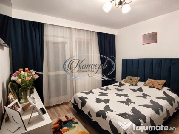 Koncept Imobiliare va ofera spre vanzare un apartament cu 2 camere, finisat si utilat la cheie, in cartierul Intre Lacuri, la 15 minute de Iulius Mall, intr-o zona retrasa de la strada principala. Apartamentul, in suprafata utila de 50 mp, este situat la etajul 4 al unui imobil cu 4 etaje reabilitat termic. Acesta este compartimentat in: hol intrare, bucataria, 2 dormitoare, baie si 2 balcoane inchise a cate 4 mp. Acesta se vinde complet mobilat si utilat, dispunand de: centrala termica proprie, aer conditionat, masina de spalat rufe, cuptor, plita, hota, TV, etc. Pentru confortul dumneavoastra, acesta dispune de o debara si 2 boxe pentru depozitare aflate la subsol. Se recomanda atat datorita calitatii finisajelor si dotarilor de care dispune, cat si zonei bune si usor accesibile. Pentru informatii suplimentare, programarea unei vizionari sau pentru a va prezenta oferta noastra completa, nu ezitati sa ne contactati telefonic, prin e-mail sau la sediul agentiei noastre de pe str. Aviator Badescu nr. 19, Cluj-Napoca.