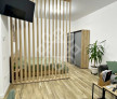 Apartamentul este amplasat la etajul 1 intr-un bloc nou, prevazut cu ascensor modern. Acesta este compartimentat astfel: hol, baie, camera cu bucatarie open space si balcon. Are o suprafata utila de 36,6 mp, la care se adauga suprafata balconului de 5,8 mp.