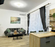Locuinta este modern amenajata, dotata cu mobilier si electrocasnice de calitate. Apartamentul este dotat cu ferestre cu geam tripan, usa de siguranta, videointerfon si aparat de aer conditionat.