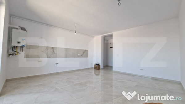 Apartamentul este nemobilat și neutilat, oferind libertatea de a-l amenaja exact așa cum ți-l imaginezi. Bucătăria open-space se integrează armonios în zona de living, iar balconul generos adaugă un plus de spațiu și confort.