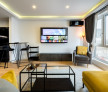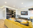 În living, televizorul plasma este montat strategic pe un perete, completând zona de relaxare și divertisment. Cu o diagonală mare, acesta oferă imagini clare și vibrant colorate, fiind perfect pentru serile de film sau pentru a urmări evenimente sportive într-o calitate excelentă.